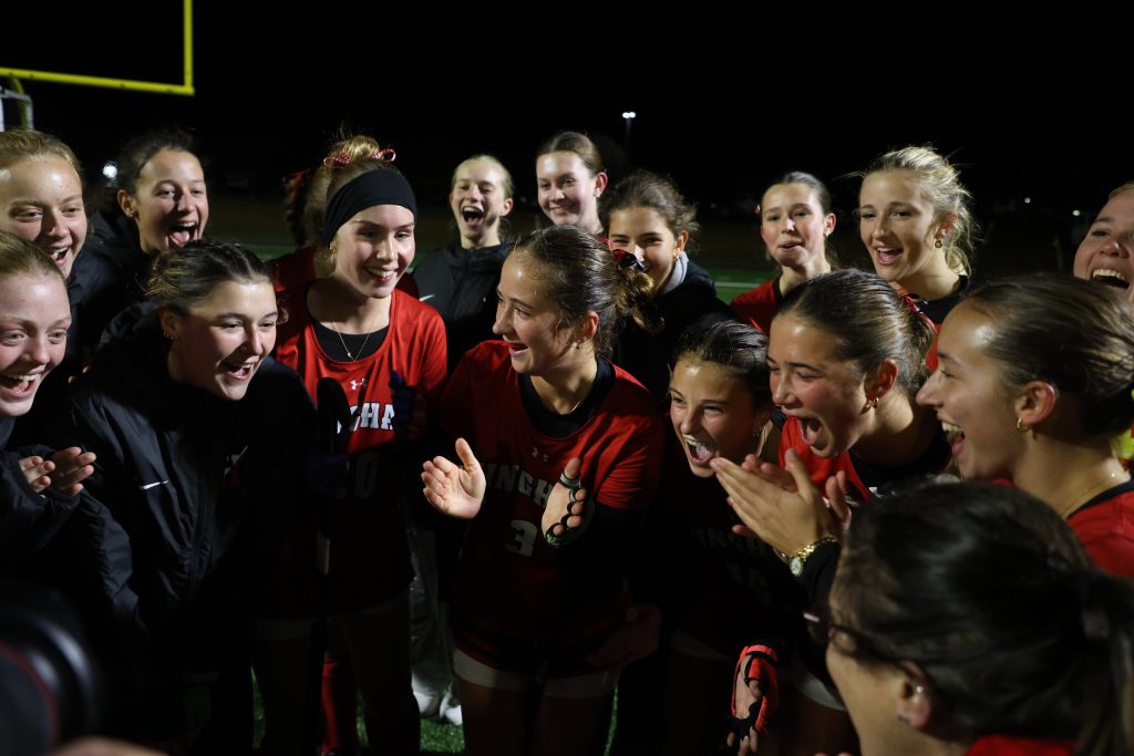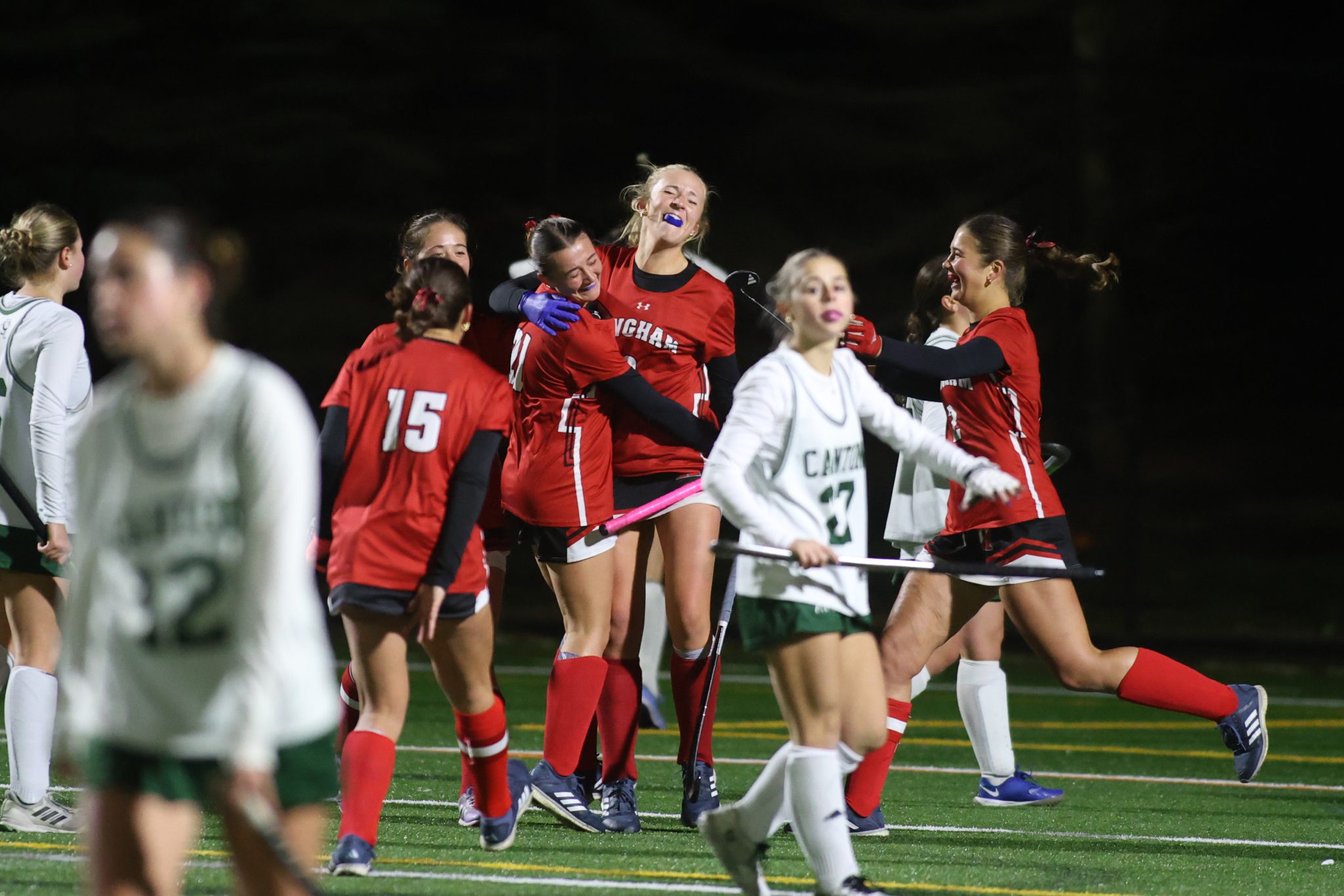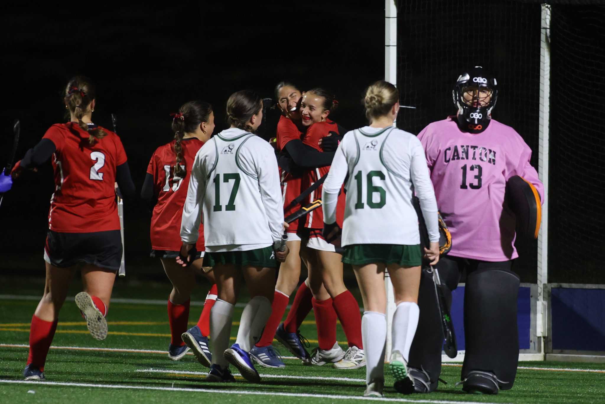 The 1–0 lead held deep into the third quarter, until sophomore Libby Baxter produced arguably the highlight of the night. Baxter carried the ball nearly the full length of the field, then dove as she fired a shot past the Canton goalie for a spectacular insurance goal.