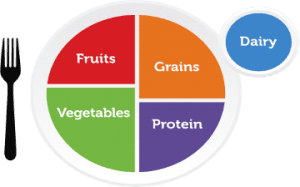 Plan your meals and be mindful of what you put on your plate. USDA guidelines recommend that ½ of your plate be filled with fruit or vegetable, ¼ lean protein and ¼ high fiber grains.