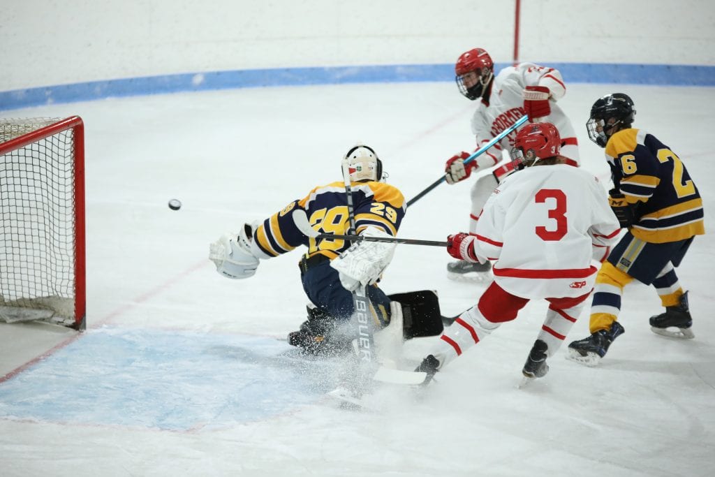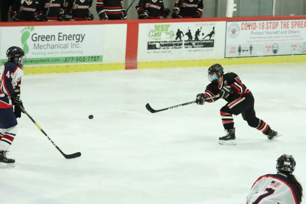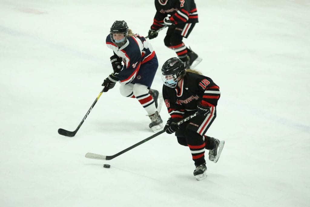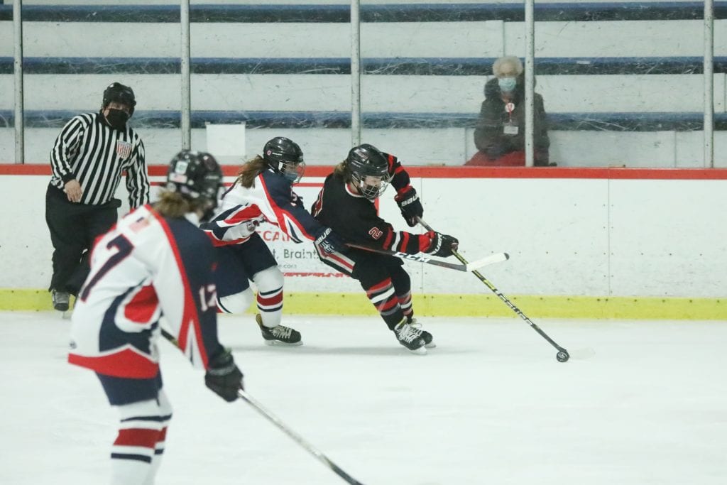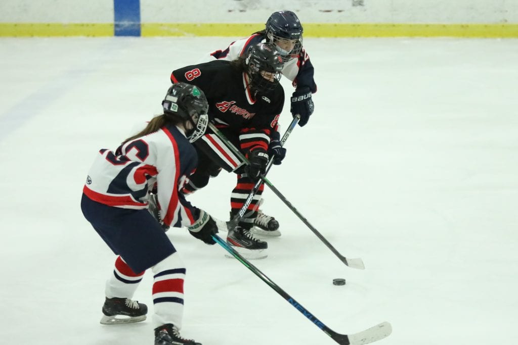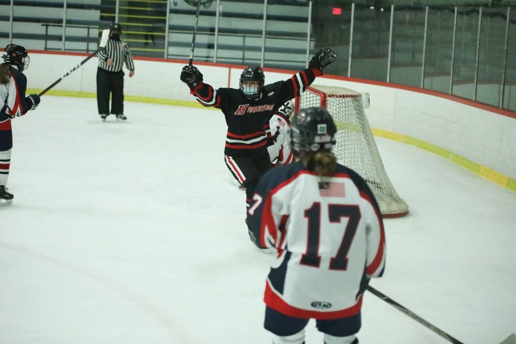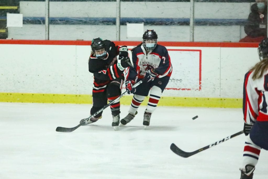 “She’s very smart, very quick, and great hands,” he said complementing Kennedy. “She’s really learning the game. She could play at the next level if she really wanted to. She’s a three sport athlete (field hockey, hockey, and lacrosse) but she’s really smart on the ice.”