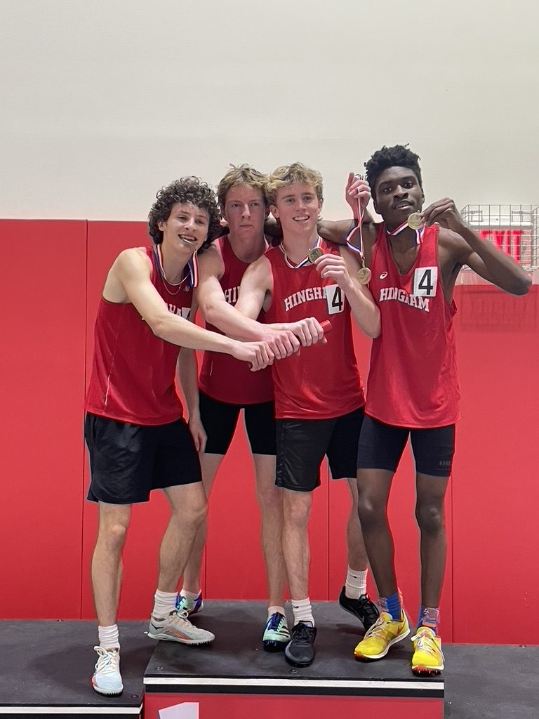 - The 4 x 400 team of Matt McCarthy, Nate Antoine, CJ Boutin and Will Matthews also qualified for Nationals and the D2 meet with a season best 3:29.88 which is 2nd best all time in Hingham and they are ranked first going into the D2 Championship.