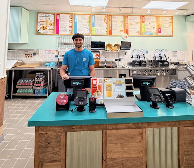 Owner Dhruv Patel, who came to Hingham from Delaware to open the new business after scouting around for what he thought would be the perfect location, told the Hingham Anchor that the cafe will open with a soft launch Sunday, Dec. 28, when a crew of 20-plus enthusiastic employees will be on hand to greet everyone who stops by between 8 a.m. and 9 p.m. The entire community is invited. From opening day to Jan. 11, the cafe will feature a $4.99 smoothie special.