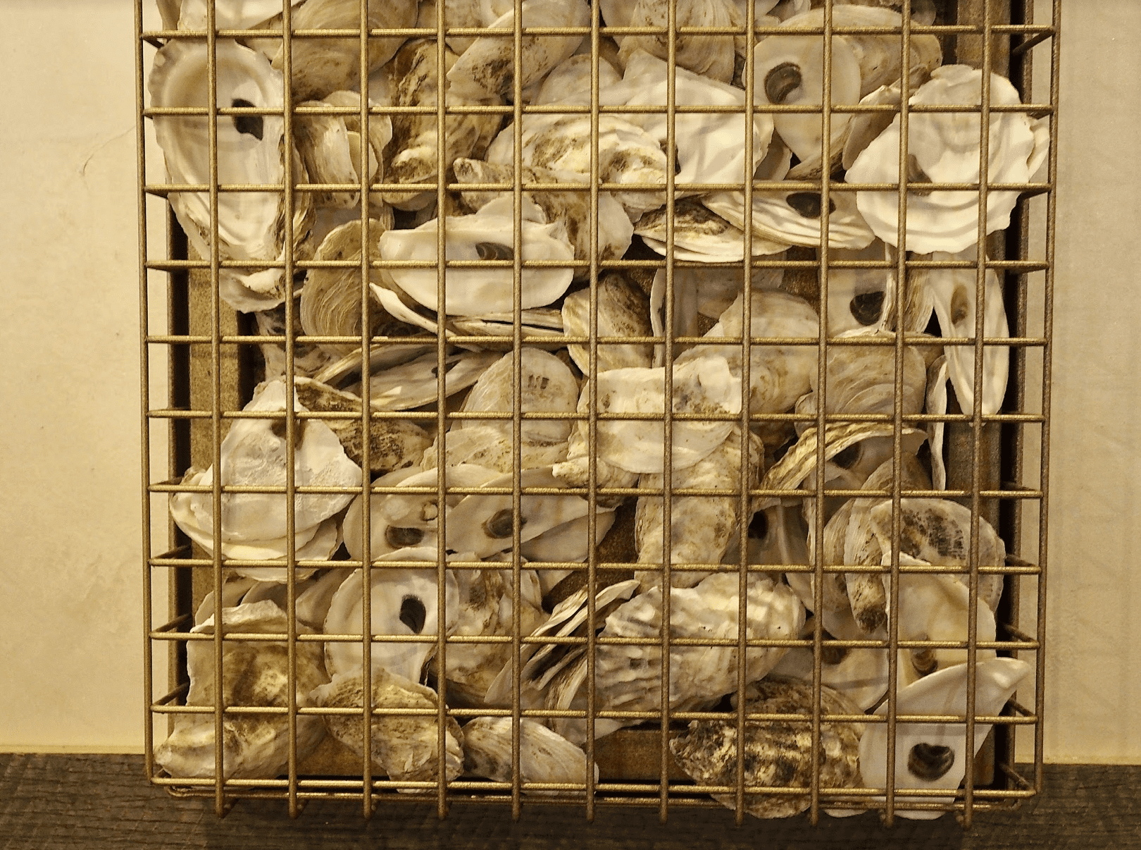 Vine Bar opened its doors just a few weeks ago. The design of the space is elegant and thoughtful. There are nods to a French cosmopolitan oyster bar, with two bars outfitted in marble with gray veins; and if you look closely, you will see hints of pink in the veining, which ties to the light pink bartop seats, a lovely nod to the female-run team. Raw light and dark wooden shiplap boards appear throughout the walls and under the bar top, juxtaposing shiny gray subway tiles. Black and brass globe light fixtures hang from the ceiling, as well as an ultra luxe spiky chandelier, which is a centerpiece in the back room. Driftwood and black-cloudy mirrors decorate the wall, as well as several wall installation pieces of brass netting, which are filled with hand-shucked oysters, creating a lovely gesture to the sea just yards away, and to the seafood-driven menu. In addition to the two bars, there are high tops, long banquettes, and table seating.