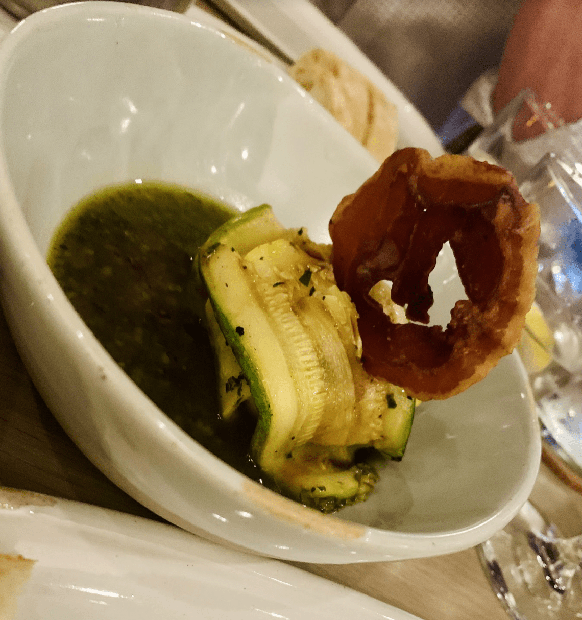 We began with oysters from Duxbury and Cape Cod, and the summer squash and zucchini duo with shaved squash wrapped around Buffalo mozzarella, served alongside a sweet tarragon pesto and finished with a crispy pancetta chip. (Pro tip: save the pesto for ultimate bread dipping.)