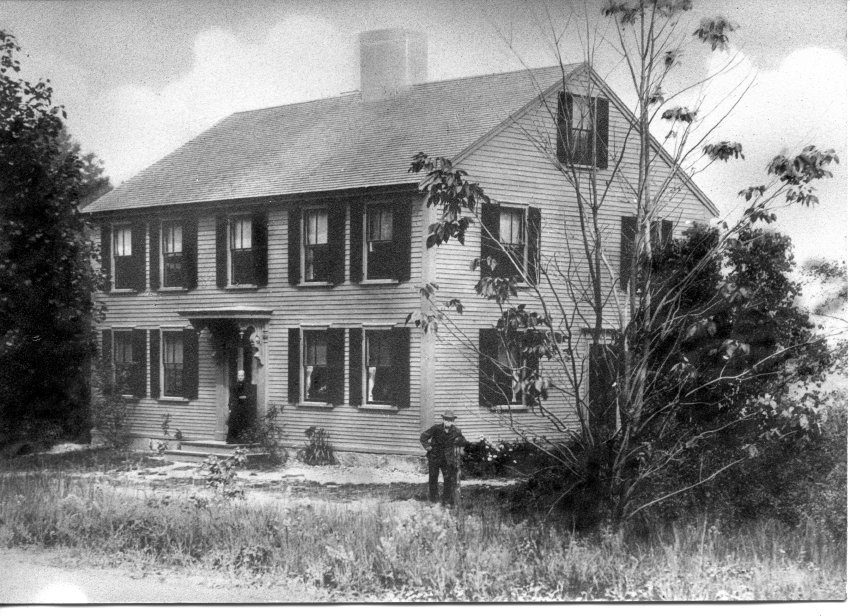 Across from the Liberty Pole Road on Main Street there is a large tract of land belonging to the Hingham Water Company. The land, once owned by Nehemiah Cushing was in Cushing family for over 200 years ending with Edward S. The others who lived there after that were all familiar Hingham names: Kress, Newcomb, and Leavitt. In 1934 there were a series of set fires in town. The Hingham Journal reported that this house, barn and all the outbuildings were destroyed. The foundation and dirt road are still there, and the road is known as the “Cutthroat” road because a former owner was found dead in the house with his throat slit, supposedly by himself. The photo is from the archives of the Hingham Historical Society .