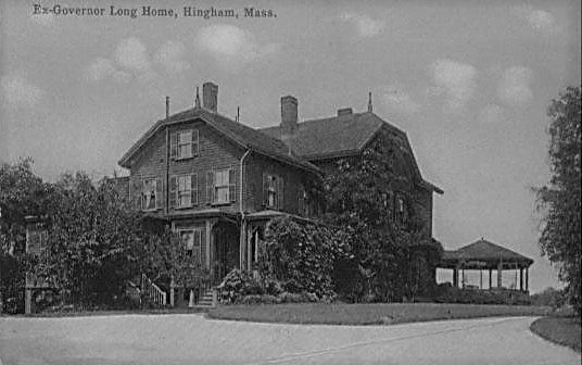 This was the home of Massachusetts Governor John D. Long. In 1957 the Town of Hingham accepted the gift of the building and 11 acres of land from the estate of Dr. Margaret Long as a memorial to her father who died in 1915. Known as Windholm, the house was torn down in the 1960s. The property today is a bird sanctuary for waterfowl with a small portion used as a town tree nursey. Check the Town of Hingham’s conservation website for a description of the scenic views and the best spot to quietly birdwatch. It is best to park at the town lots at the harbor and walk up Ship Street to Cottage between #55 and #43 as parking is limited on the street. This post card is in the archives of the Hingham Historical Society.