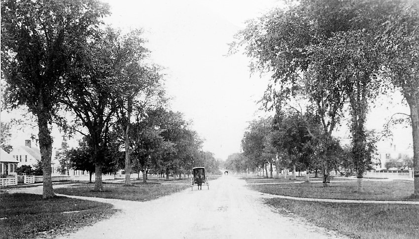 In 1841 the negative-positive process was developed and patented. This meant that for the first time multiple copies could be made from a single glass negative. Many early camera hobbyists often sold copies of their pictures to fund the hobby like this one. This is Hingham’s Glad Tidings Plain between Wilder Hall and Cushing Street when Elm trees lined the dirt roadway. This copy is in the 1893 History of Hingham and was taken by Henry F. Guild, which means it was taken before 1893. Henry Robinson included it in his 1980 book: Two Hundred Years in South Hingham 1746-1946 and Dempsey and MacMillan included it in their 2014 book: Hingham Through Time. This view was also used on numerous calendars and post cards and is one of several in the Hingham Historical Archives.