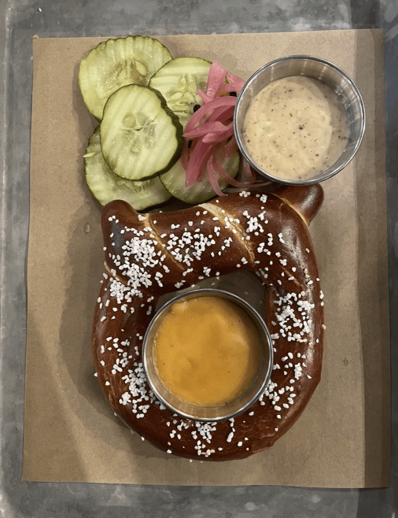 By the way, Chef John Tretter is not afraid to play with flavors. The new menu is playful with a focus on brewery favorites and standbys … but with fun twists, piquant seasoning, pickled vegetables, vibrant colorful dishes, and bright, bold flavors.