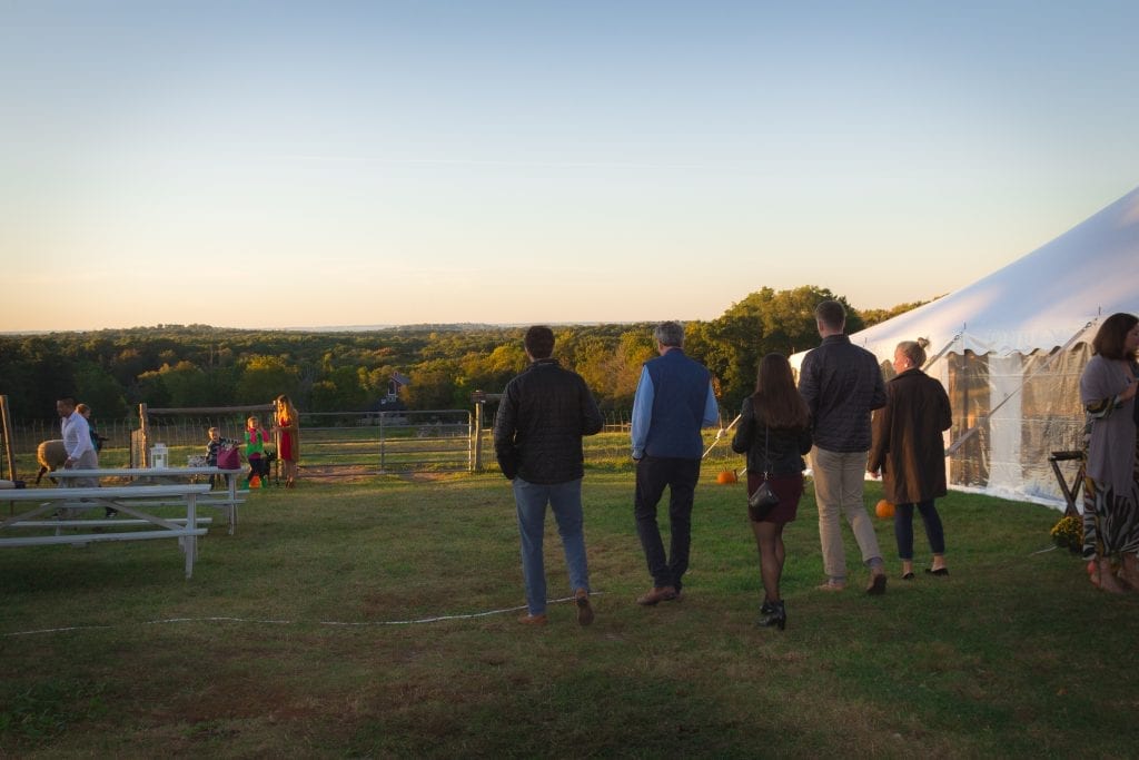 Guests enjoyed a gorgeous evening at Weir River Farm when they gathered for the annual Farm Formal on Friday, September 29th. Attendees enjoyed the sunset over cocktails from the top of Turkey Hill and a stunning farm-to-table dinner presented by Kate’s Table.