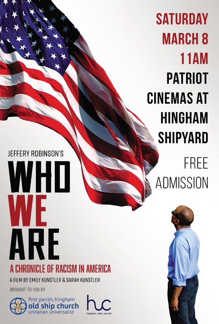 The Hingham Unity Council and Old Ship Church are co-sponsoring a viewing of this award winning documentary film on Saturday, March 8. Admission is free. The film features Jeffery Robinson, a graduate of Marquette University and Harvard Law School, and a trial lawyer for over 40 years – as a public defender, in private practice, at the ACLU, and now at The Who We Are Project. In 2011, Robinson began raising his then 13-year-old nephew and, as a Black man raising a Black son, struggled with what to tell his son about racism in America. How, he wondered, did we get here? And when he started looking at our Nation’s history, Robinson was shocked by what he had not known.